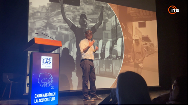 Puerto Varas, 24 de abril de 25.- El pasado jueves, Álvaro García Sepúlveda, gerente comercial de ITG, abrió la jornada con la charla “Oxigenación: los mejores salmones que cruzan la meta”, una presentación inspiradora y cercana donde invitó a la audiencia a recordar siempre por qué se oxigena: por el bienestar de los peces. A través de humor, historias personales y comparaciones con su experiencia como maratonista de 42K, mostró que, igual que en una carrera de fondo, sin oxígeno suficiente no hay rendimiento ni meta alcanzada.